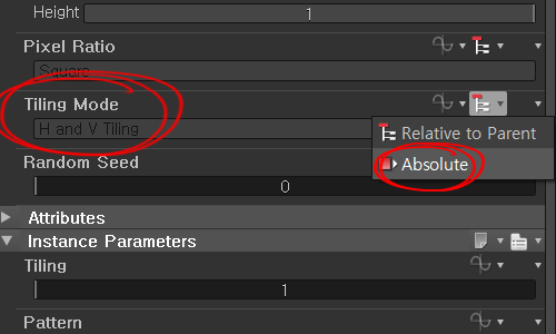 서브스턴스 디자이너(substance designer)에서 shape 노드의 타일링 모드(tiling mode) 비활성화하기