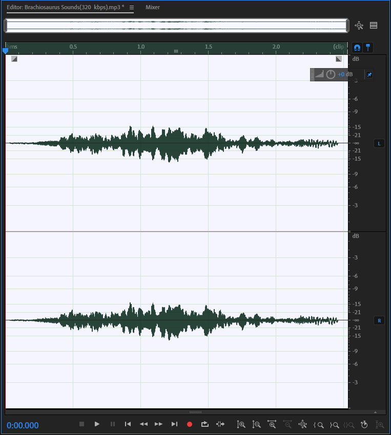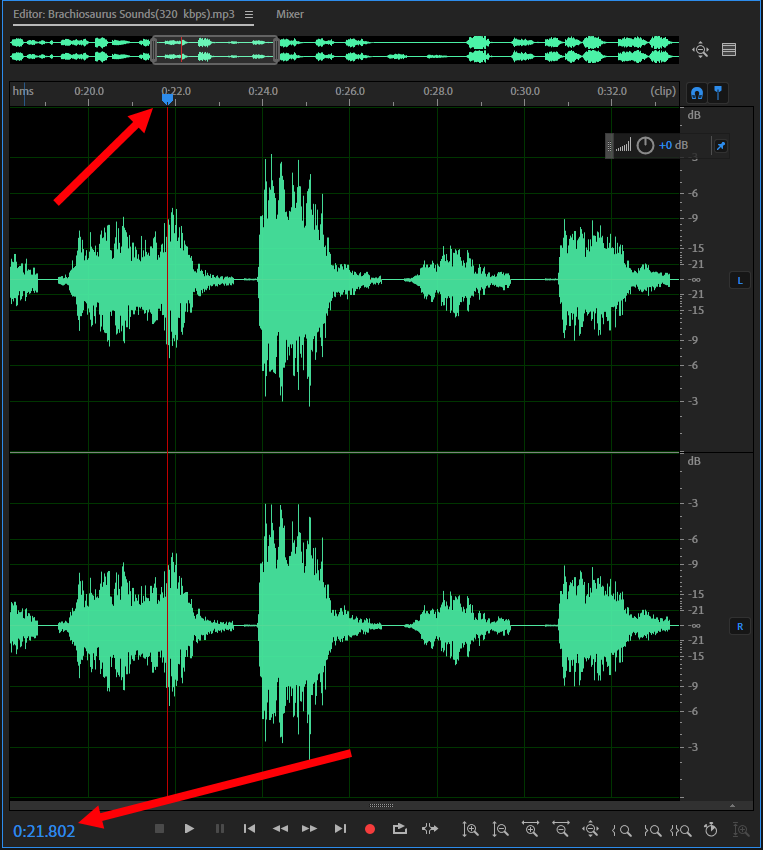 2)조절자를 이동해서 트랙의 현재 위치를 설정한다. 에디터 좌측 하단에서 트랙에서 현재 위치의 시간을 확인할수있다.