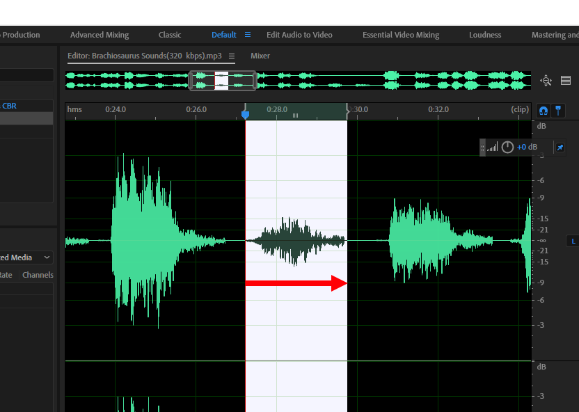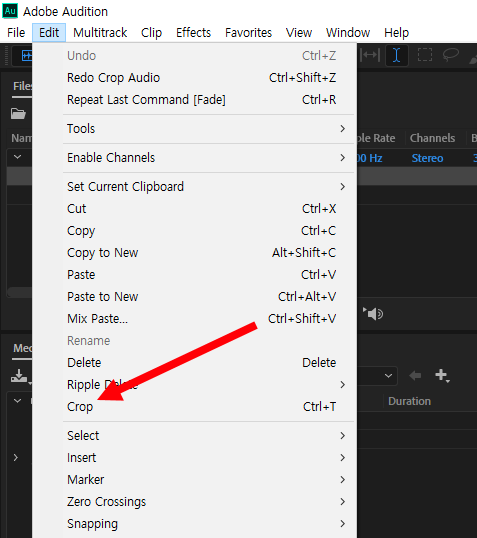 어도비 오디션(audition)에서 트랙 자르기(crop)