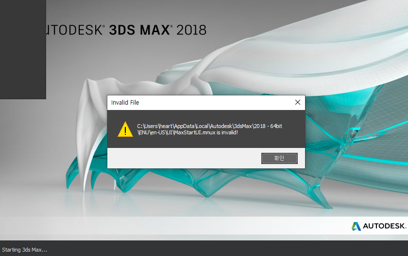 3D맥스에서 MaxStartUI.mnus is invalid! 문제해결