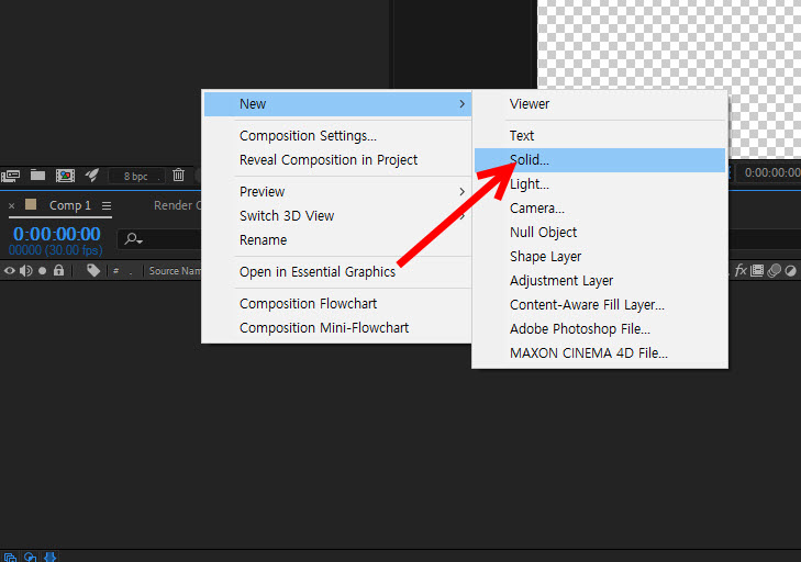 1)컴포지션에 새로운 솔리드 레이어를 추가합니다.