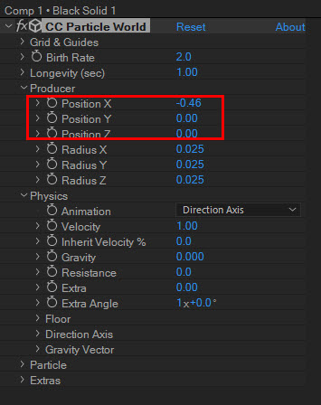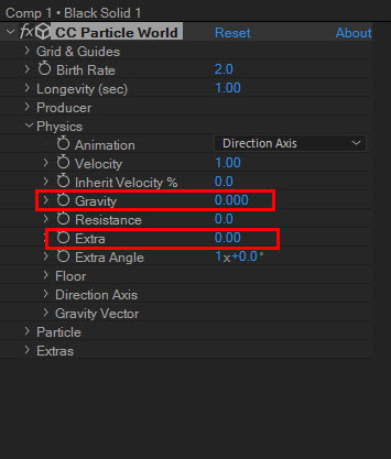 2)솔리드 레이어에 CC Particle world 이펙트를 추가합니다.