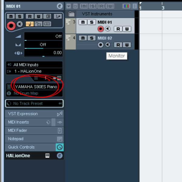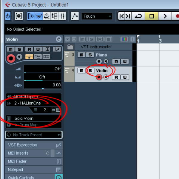 10)첫번째 트랙을 선택하고 좌측에서 1번 HALionOne를 설정합니다.