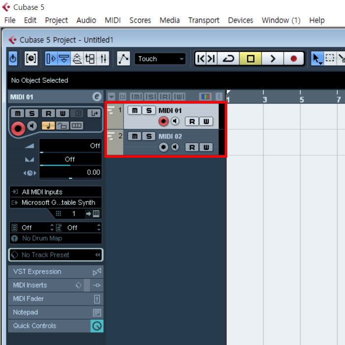 3)2개의 MIDI 트랙(MIDI01, MIDI02)이 생성된것을 확인할수있습니다.
