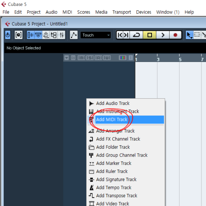1)좌측 빈공간에서 마우스 우클릭하면 생기는 메뉴에서 Add MIDI Track를 선택합니다.