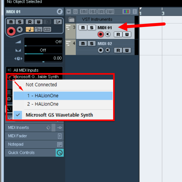 10)첫번째 트랙을 선택하고 좌측에서 1번 HALionOne를 설정합니다.