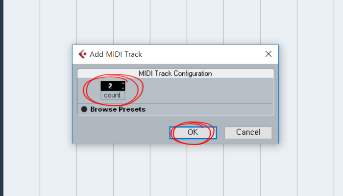 2)추가할 트랙의 개수를 설정하고 확인합니다.