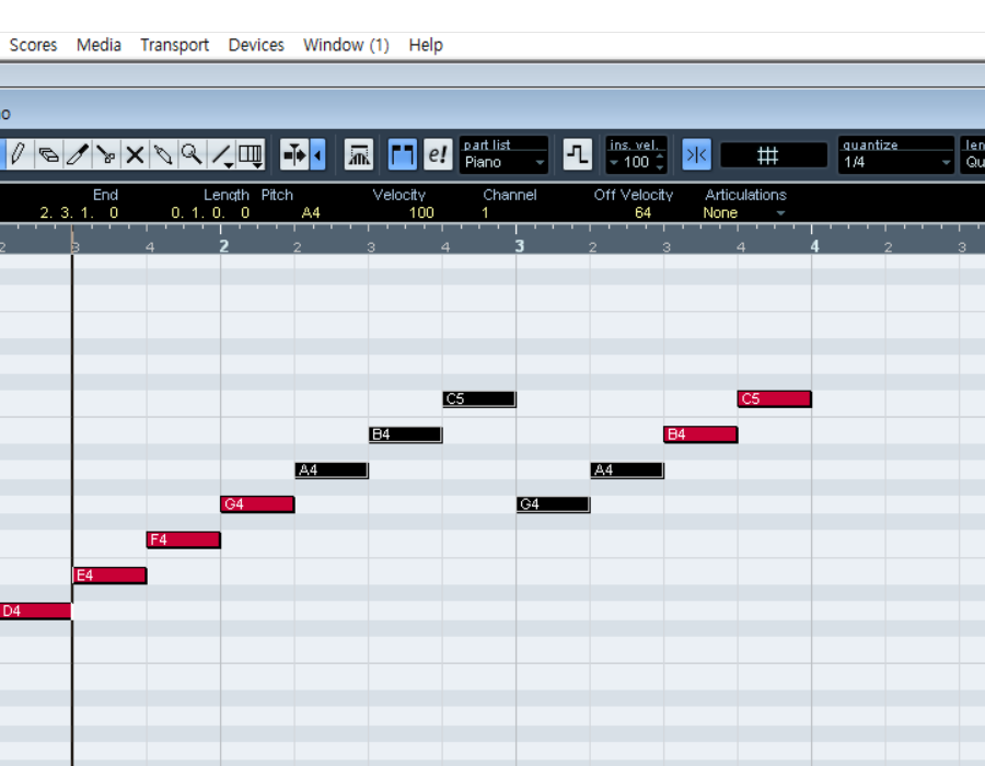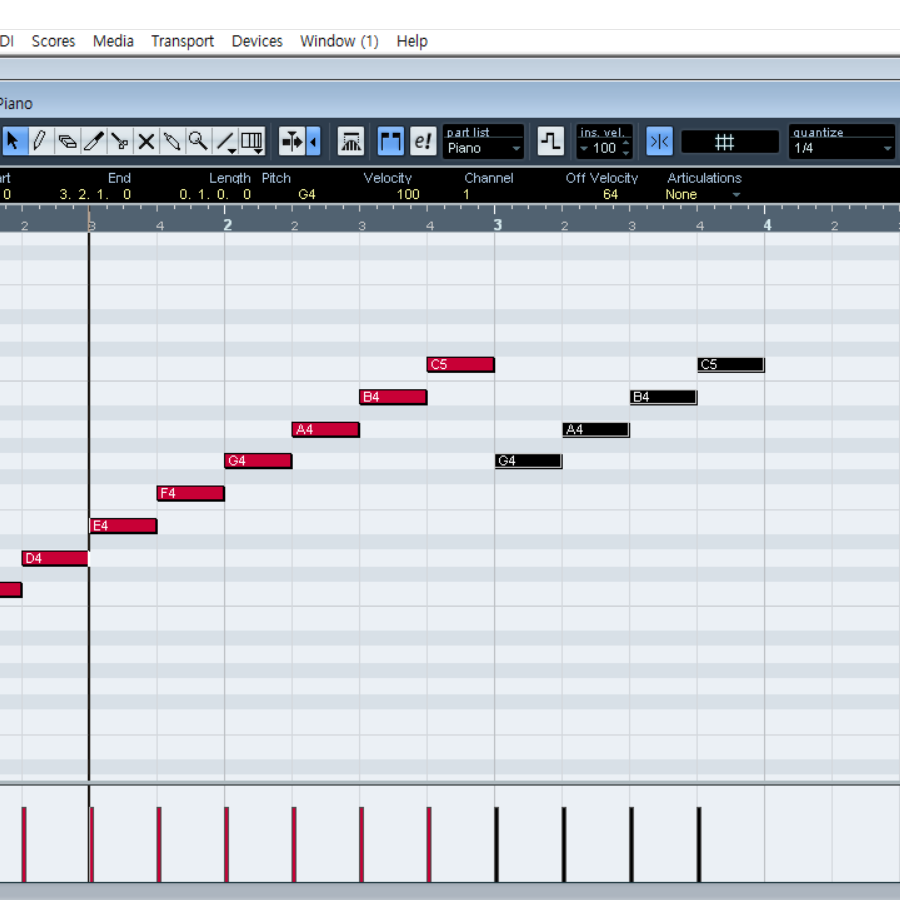 큐베이스(cubase) - 키(key) 작성하기(key editor)