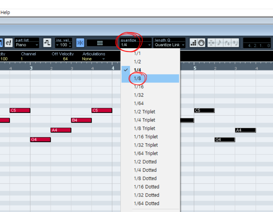12)quantize에서 1/8를 선택합니다(기본값1/4)