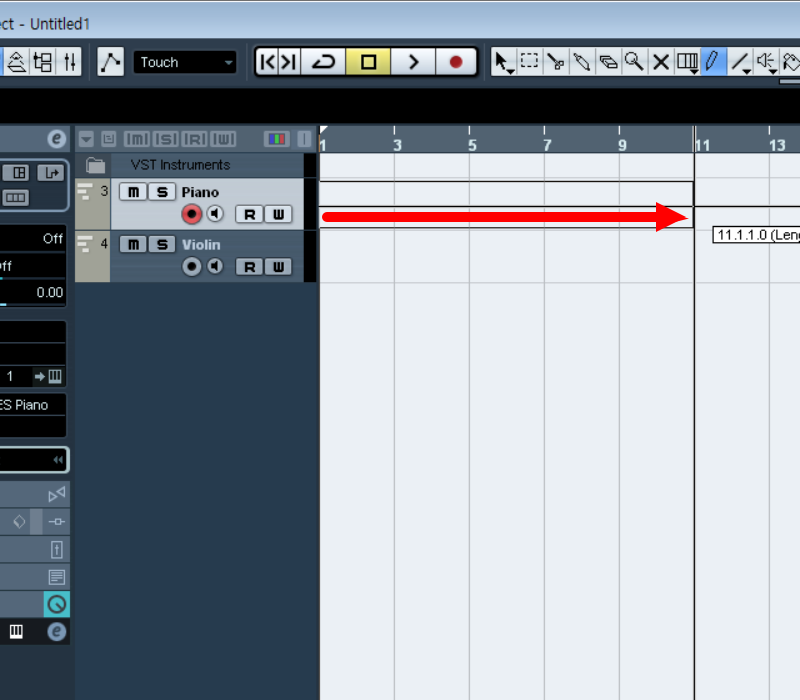 7)하단에 있는 transport 패널에서 작성한 key를 재생합니다. transport 패널에서 주요 transport 기능과 재생 및 녹음과 관련된 여러 옵션을 사용할수있습니다(transport의 transport panel, 단축키 f2)