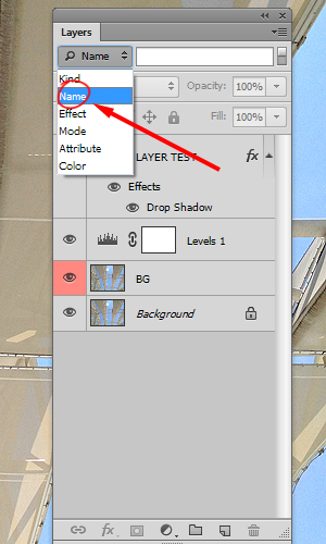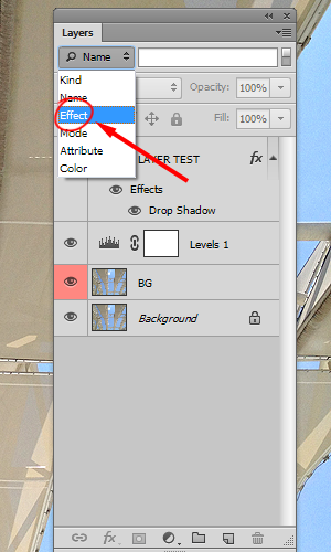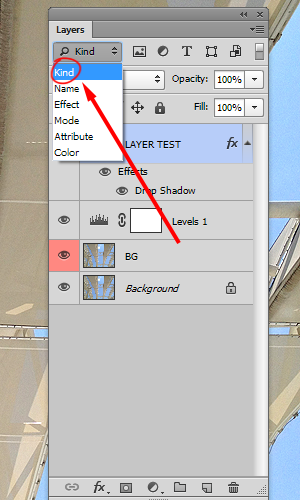 2)레이어 패널의 좌측 상단에서 필터 유형을 선택할수있습니다. kind를 선택합니다.