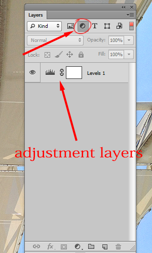 1)예에서 background 이미지 위에 3개의 레이어(픽셀 레이어, adjustment 레이어, type 레이어)를 구성하였습니다