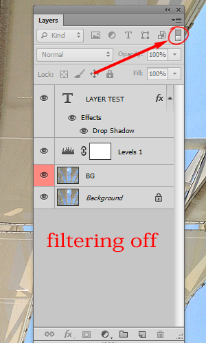 4)레이어 패널의 우측 상단에서 필터링 기능을 활성화 및 비활성화할수있습니다.