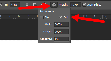 포토샵(photoshop)에서 Line Tool을 사용하여 화살표 모양 만들기