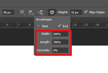 포토샵(photoshop)에서 Line Tool을 사용하여 화살표 모양 만들기