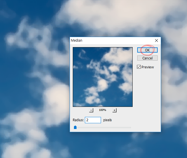 8)상단의 filter 메뉴에서 noise의 median으로 이동합니다.