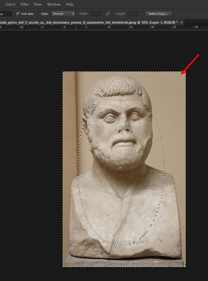 3)선택 툴(marquee tool)을 사용하여 선택영역을 설정합니다.
