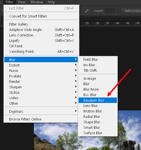 3)상단의 filter 메뉴에서 blur의 gaussian blur로 이동합니다.