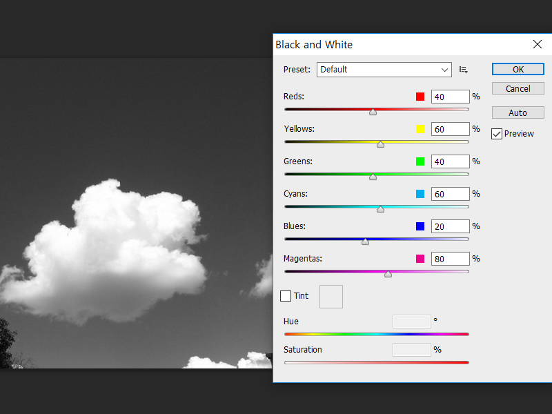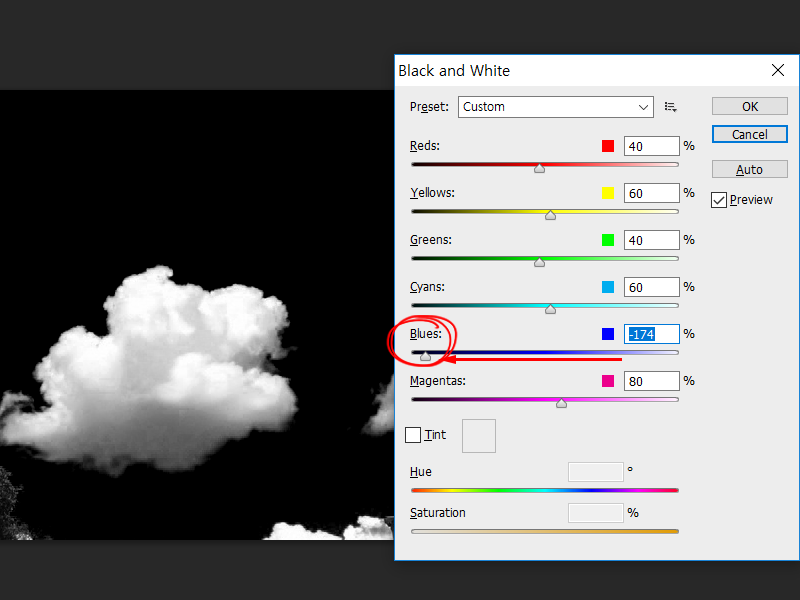 3)Blues의 값을 낮추면 파란색 영역의 밝기가 낮아지는것을 확인할수있습니다.