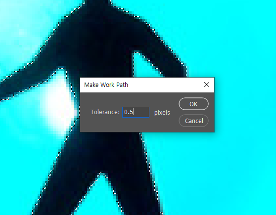 (tolerance 수치를 조절하려면 make work path from selection를 alt+클릭합니다)