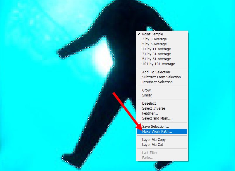 2)선택 영역에서 마우스 우클릭하고 make work path를 선택합니다.