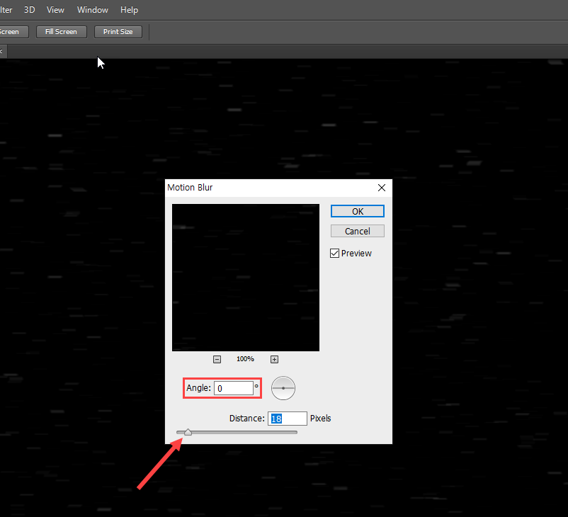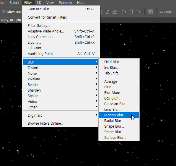8)위에서 완성한 이미지를 복사하고 motion blur 필터를 적용합니다.
