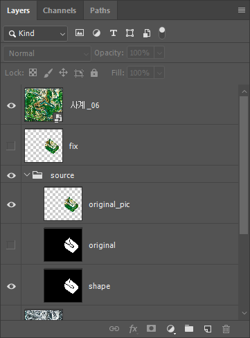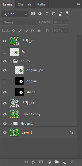1)아래 예에서 썸네일의 크기가 작아서 레이어의 이미지를 확인할수없습니다.