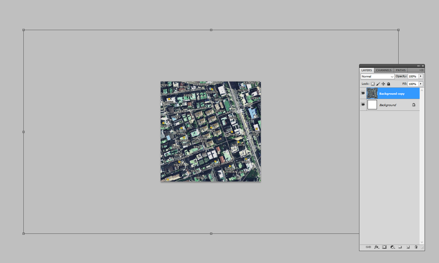 1)이미지를 선택하고 transform tool을 선택합니다(단축키 Ctrl+t) 이미지의 크기가 캔버스보다 큰 것을 확인할수있습니다.