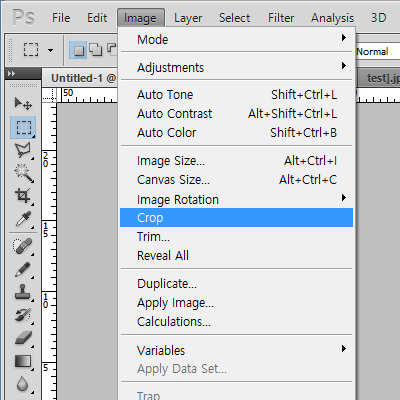 3)상단의 image 메뉴에서 crop를 선택합니다.