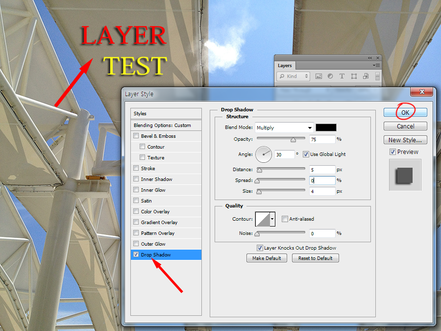 4)drop shadow는 오브젝트에 그림자를 생성합니다.