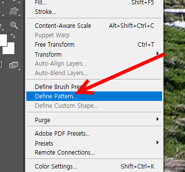 2)상단의 edit menu에서 define pattern을 선택합니다.