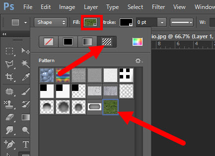 7)도형 툴(shape tool)의 fill 옵션에서 사용자 정의 패턴을 사용할수있습니다.