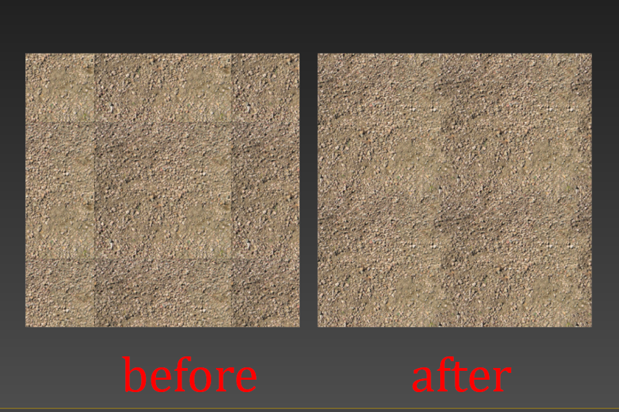텍스처를 타일 맵(tile map)으로 사용할때 offset 필터와 도장툴을 사용하여 텍스처의 타일 경계(seam)를 제거하는 방법
