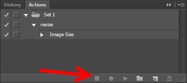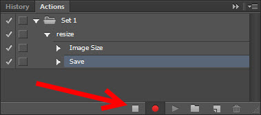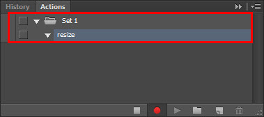 4)패널에 액션이 추가된것을 확인할수있다. 하단의 빨간색 원은 현재 작업이 기록중임을 의미한다.