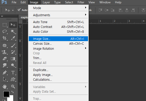 4)상단의 image 메뉴에서 image size로 이동한다.