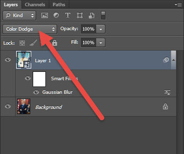 6)레이어의 blend mode에서 color dodge를 선택합니다.