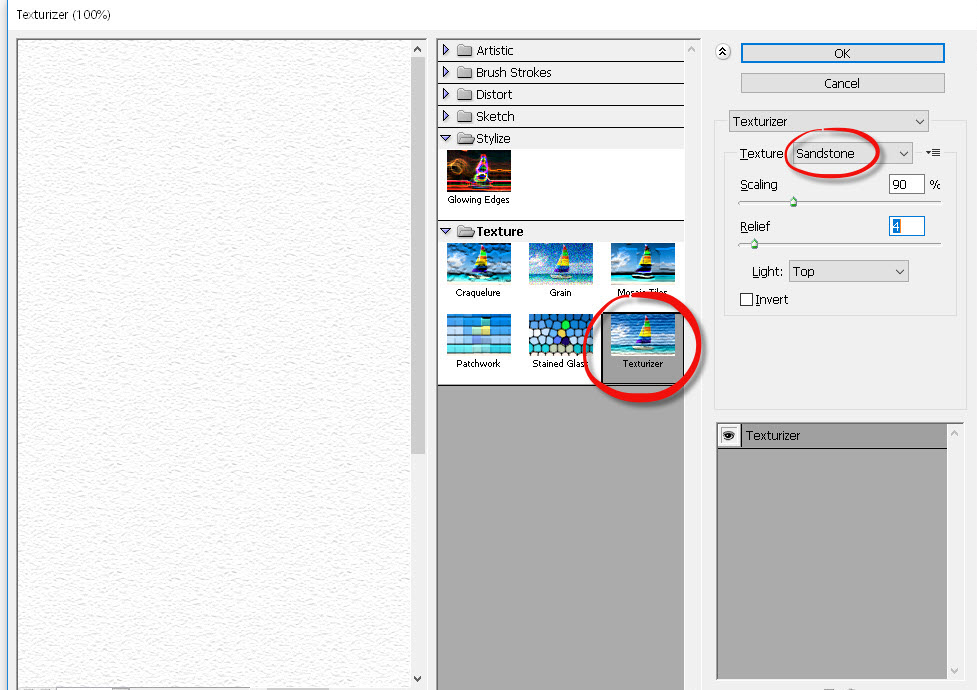 13)종이의 질감을 추가하기위해 흰색 배경의 레이어를 추가하고 texture의 texturizer를 적용합니다(filter gallery)
