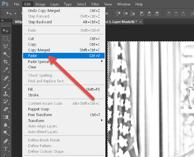 9)상단의 edit 메뉴에서 paste를 선택합니다.