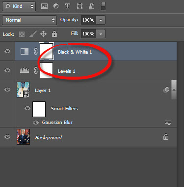 7)새로운 adjustment layer(levels, black & white)를 생성합니다.