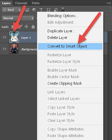 4)레이어를 스마트 오브젝트로 변환합니다. 스마트 오브젝트에 추가한 필터는 스마트 필터로써 이후에 재편집 가능합니다.