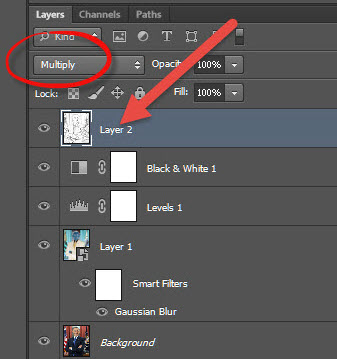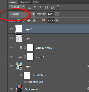14)레이어 blend mode에서 multiply를 선택해서 이미지에 종이 질감을 추가합니다.