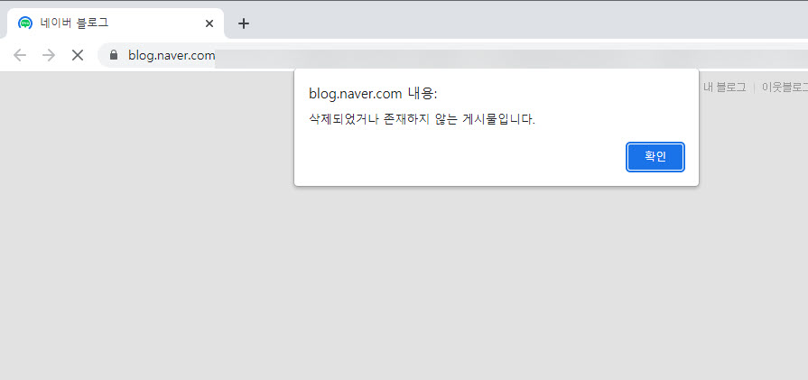 2)검색 결과를 클릭하여 해당 페이지 URL로 이동하면 '삭제되었거나 존재하지 않는 게시물입니다' 라고 표시됩니다.