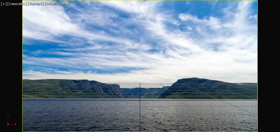 10)뷰포트에 배경 이미지가 표시되며 안전 프레임 및 렌더 출력 해상도와 일치하는것을 확인할수있습니다.