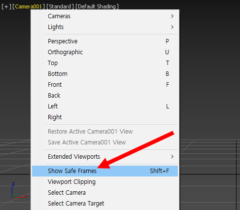 5)뷰포트에 안전 프레임(safe frame)을 표시합니다(단축키 shift+f)