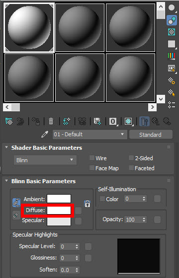 3)재질의 디퓨즈(diffuse) 색상을 흰색으로 설정합니다.