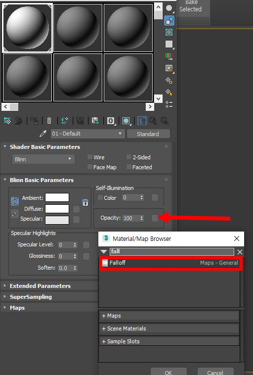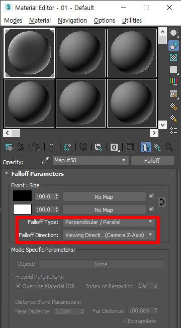 6)재질의 미리보기에서 불투명도의 falloff를 확인할수있습니다.