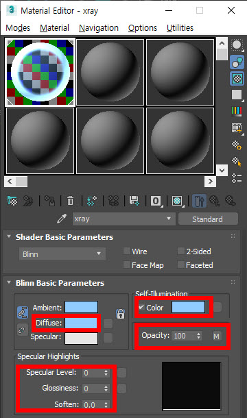 3D맥스 스캔라인 렌더러(scanline) 엑스레이(X-ray) 재질 샘플