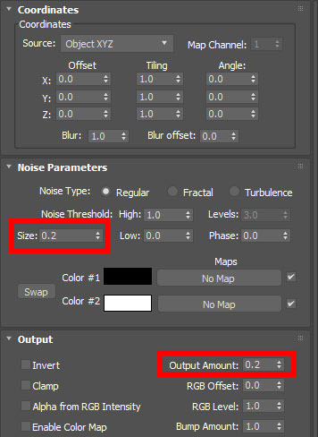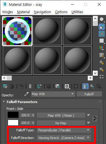 standard 재질, falloff 맵, noise 맵