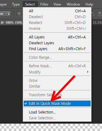 select 메뉴에서 edit in quick mask mode를 체크 해제합니다.