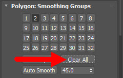 3)polygons:smoothing groups에서 clear all을 클릭합니다.